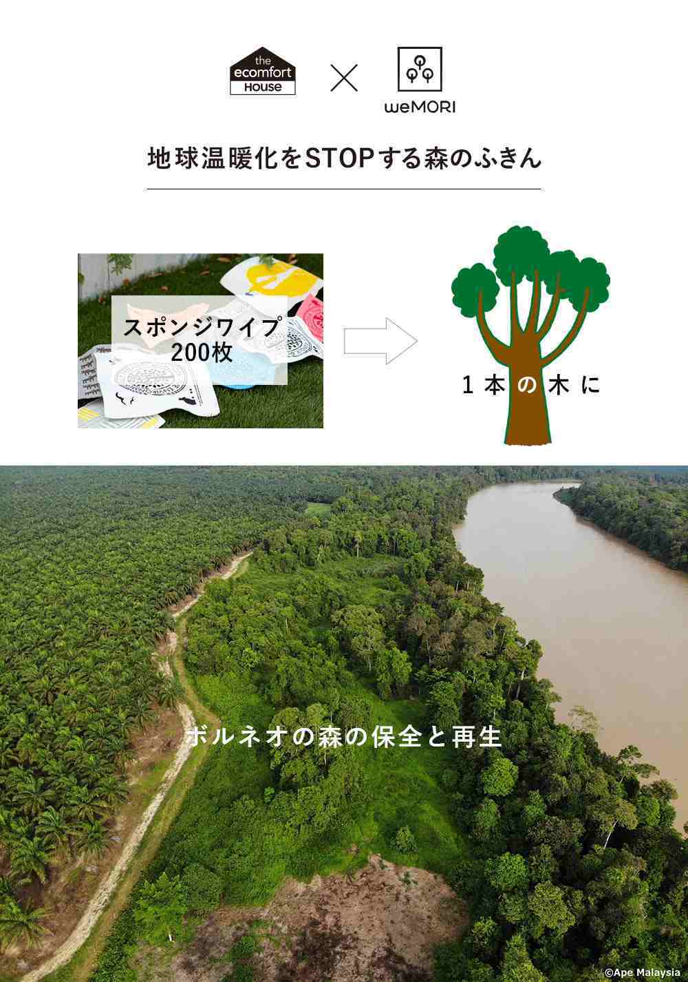 森を循環させるのもスポンジワイプの大切な役割。そんな一生を遂げるスポンジワイプは、エコフレンドリーな循環型ふきんです。